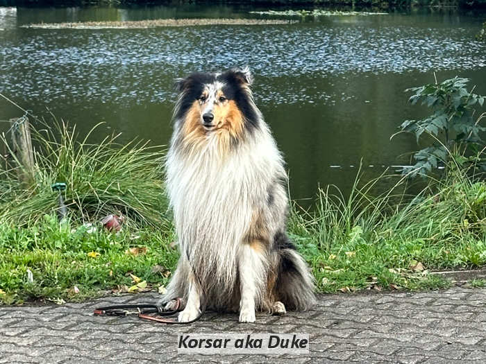 | Korsar (R), blue-merle | ...ist jetzt ein echter Duke und residiert in Duisburg mit einem Sheltie-Kumpel über Katzen und Menschen |